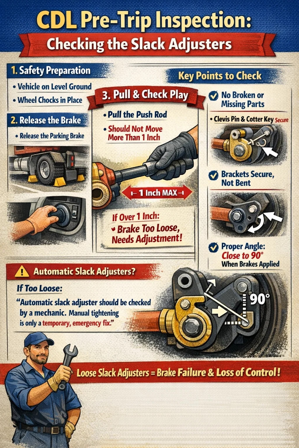 En el proceso de obtención de una licencia de conducir comercial (CDL), la inspección previa al viaje es una parte crucial y la inspección de los ajustadores de tensión es uno de los elementos en los que los examinadores se centran más de cerca.