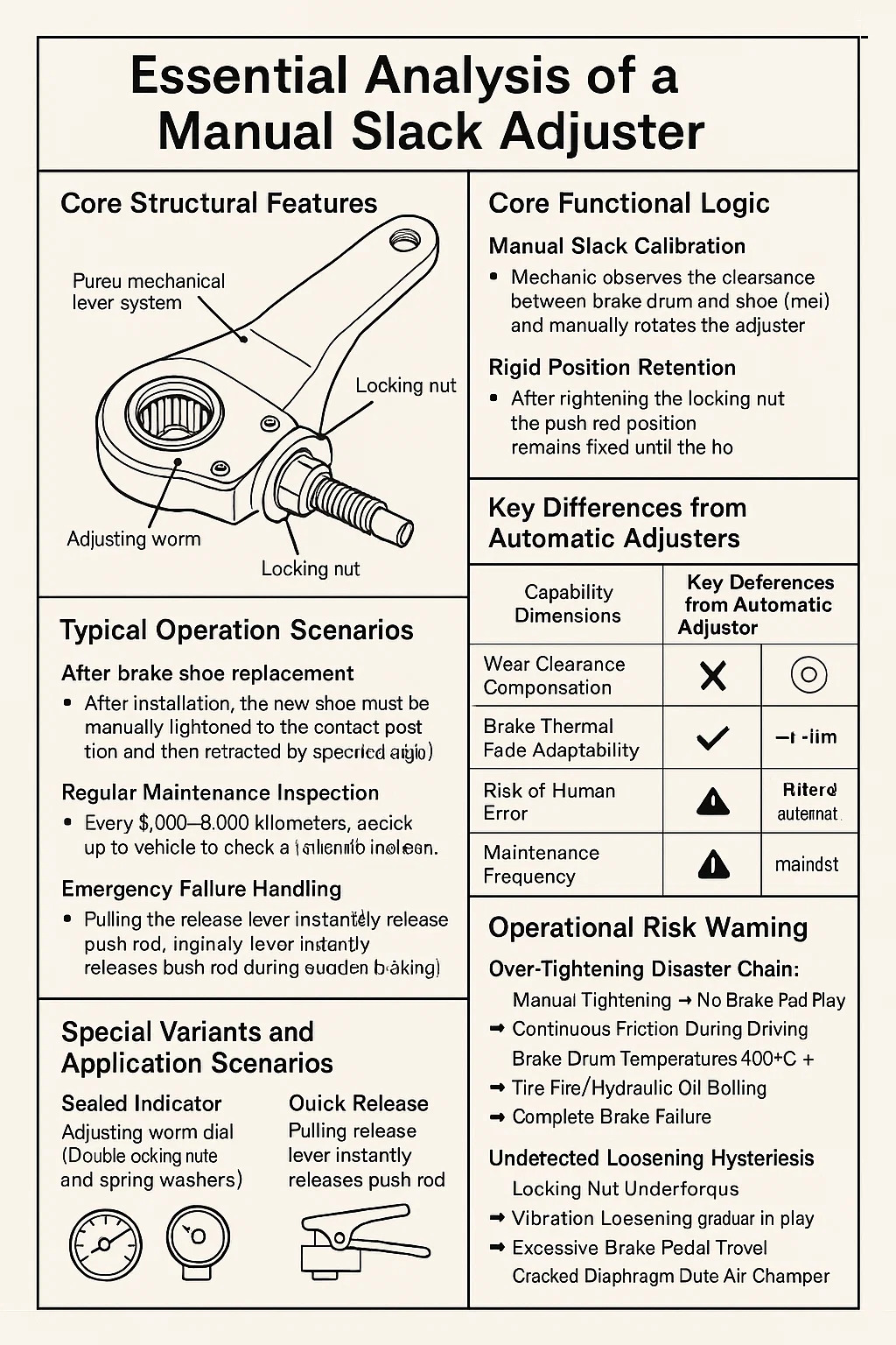 Histéresis de aflojamiento no detectado: bloqueo de tuerca de bloqueo → aflojamiento de vibración → aumento gradual en el juego → excesivo pedal de freno viajar → diafragma agrietado debido a la varilla de empuje de la cámara de aire durante el frenado repentino