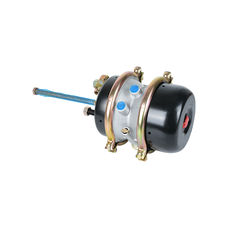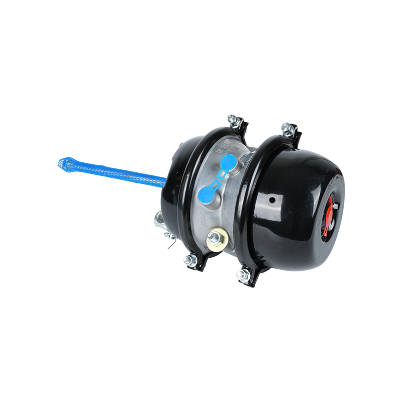Estructura de doble cámara: integra la cámara de freno de conducción y la cámara de estacionamiento/freno de emergencia, y logra una doble protección a través del control independiente de la ruta del aire. Por ejemplo, cuando la presión del aire del freno de conducción es anormal, el resorte de almacenamiento de energía puede liberar instantáneamente energía para completar el frenado de emergencia. Tianbo utiliza componentes neumáticos SMC japoneses y tecnología de ajuste de precarga de primavera personalizada para permitir que los productos de doble cámara alcancen una respuesta a nivel de milisegundo bajo una presión crítica de 0.65MPa, convirtiéndose en el estándar para vehículos especiales como vehículos de transporte químico peligroso.